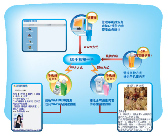 - 形式多樣:手機(jī)報(bào)平臺(tái)提供了豐富的手機(jī)報(bào)瀏覽方式,目前支持用戶(hù)通過(guò)瀏覽WAP網(wǎng)站或彩信的方式閱讀報(bào)紙;