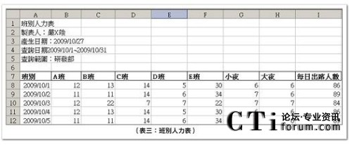 與分時人力表極為相似,但此報表顯示的是當(dāng)天每個班別的表定出席人數(shù),通常是在計(jì)算津貼或是特殊事件(Ex:大夜班座席員數(shù)量)時使用,唯因現(xiàn)場管理或班務(wù)調(diào)度之需,可能會拖動班表造成座席員表定班別之實(shí)際上下班時間與原始班別設(shè)計(jì)之起訖時間不同,管理人員需特別注意。