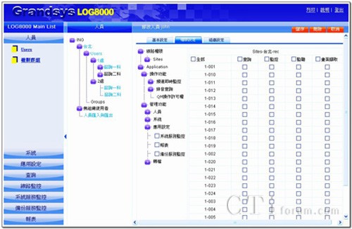 權限管理設計,采樹枝狀展開圖之設計模式,讓系統(tǒng)管理者可以輕易地掌握目前建立組織(各個據(jù)點)、人員(為值機員、督導、評分員或管理者)與不同群組之狀態(tài),設定多層級的權限密碼,增加維護便利性。