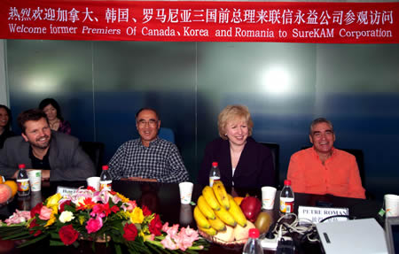 日前,加拿大前總理金·坎貝爾女士、韓國前總理李洪九、羅馬尼亞前總理彼得·羅曼一行受中國人民外交學(xué)會的邀請來華進行訪問,旨在促進三國與中國人民之間的友好往來和了解我國的社會經(jīng)濟發(fā)展。9月3日,中國人民外交學(xué)會安排這三國前總理來到中關(guān)村科技園區(qū)的北京聯(lián)信永益科技有限公司參觀,了解中關(guān)村新技術(shù)開發(fā)區(qū)內(nèi)中小企業(yè)發(fā)展和創(chuàng)業(yè)情況。