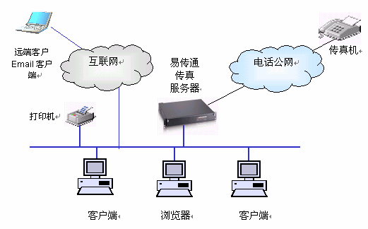 易傳通 網(wǎng)絡(luò)傳真服務(wù)器是基于網(wǎng)絡(luò)的瀏覽器/服務(wù)器與客戶端/服務(wù)器(B/S 與C/S)設(shè)計的,它采用了易傳通 專業(yè)的系統(tǒng)設(shè)計,包括國家驗證的專業(yè)傳真軟件系統(tǒng),配上專用的硬件,一體化設(shè)計,只需接上網(wǎng)線、電話線,電源,即可使用,用戶無需添加任何其他設(shè)備,即可讓您享受網(wǎng)絡(luò)傳真帶來的方便、安全、快捷。