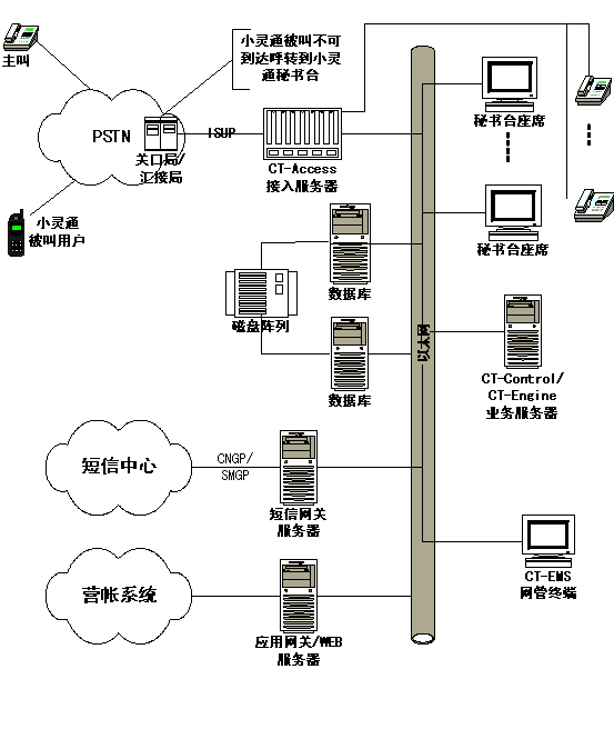小靈通秘書臺業(yè)務系統(tǒng)結構見下圖: