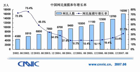1、上網人數持續(xù)發(fā)展,截止到2007年6月底,已達1.62億。手機上網人數已達4430萬,而上一年這個數字為1700多萬。
