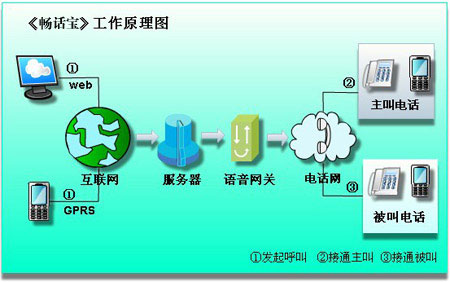 具體來講就是在手機里安裝“暢話寶”應用軟件(在計算機桌面提供web客戶端),該軟件帶有通信錄和觸發(fā)GPRS的功能,可以通過無線互聯(lián)網將電話號碼發(fā)送到平臺,通過PSTN發(fā)起通話(2方或多方)。這個手機客戶端軟件,可無縫對接到固網增值業(yè)務平臺上(多方通信平臺)?蛻舳塑浖陨頂y帶有通信錄功能,調用方便。部分機型可調用手機本身的通信錄。