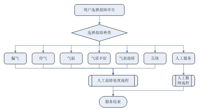 業(yè)務(wù)咨詢:用戶通過人工、自動語音等方式咨詢有關(guān)政策法規(guī)、資費標(biāo)準(zhǔn)、用氣常識、報裝方法等,系統(tǒng)以語音、傳真、Email、短消息等方式回復(fù)客戶。