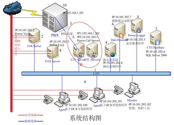 根據(jù)客戶的實(shí)際情況,PCS推薦的CTI熱備呼叫中心系統(tǒng)配置如下: