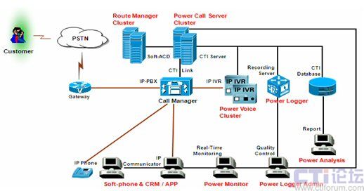 CTI、IP-IVR、IP-REC、CRM、數據庫可共用一臺服務器 |