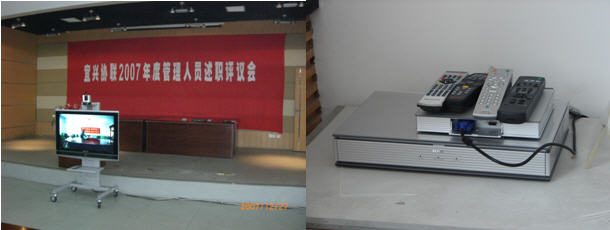 在宜興公司大樓二樓的貴賓室內(nèi),配置一套SONY PCS-1P視頻會(huì)議終端;并在此終端內(nèi)安裝了支持6點(diǎn)多點(diǎn)會(huì)議的H.323內(nèi)置多點(diǎn)MCU。