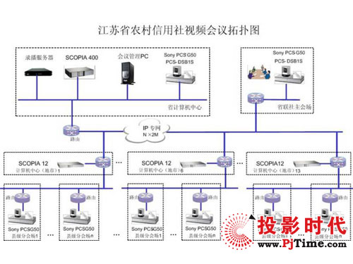 本次設(shè)計方案中,上海索高通過對江蘇農(nóng)信社的全省分布和各地實際需求,提供72套Sony PCS-G50視頻會議終端,IP網(wǎng)絡(luò)支持最大4Mbps的視頻傳輸速率,為用戶提供4CIF的高質(zhì)量視頻效果,配合H.264的強(qiáng)大功能一起獲得更高的媒體處理能力。通過Radvision