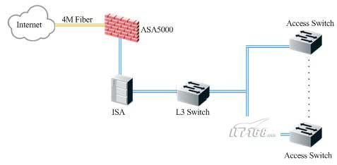 客房局域網通過一條6M的光纖接入CNC網絡,網關設備承擔了DHCP、NAT和流量限制等功能,同時在思科6504上安裝有安全板卡,對內部網絡安全進行加強和防御。由于每個客房有2~3個信息點,客房局域網總共有1300個左右的信息點。