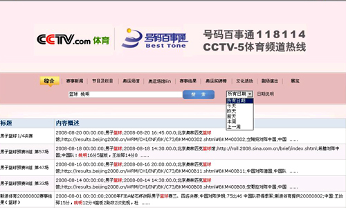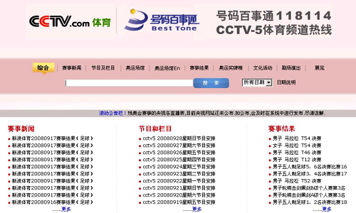 從8月8日北京奧運(yùn)會(huì)開幕到9月17日北京殘奧會(huì)閉幕,由北京拓爾思信息技術(shù)股份有限公司(簡(jiǎn)稱TRS)提供核心技術(shù)動(dòng)力的中國電信118114號(hào)碼百事通與CCTV-5攜手打造“央視體育頻道服務(wù)熱線”, 用最好的服務(wù),最新、最快、最準(zhǔn)確的信息,為奧運(yùn)會(huì)提供優(yōu)質(zhì)服務(wù),使得號(hào)碼百事通118114真正成為奧運(yùn)觀眾最值得信賴的信息服務(wù)平臺(tái)。