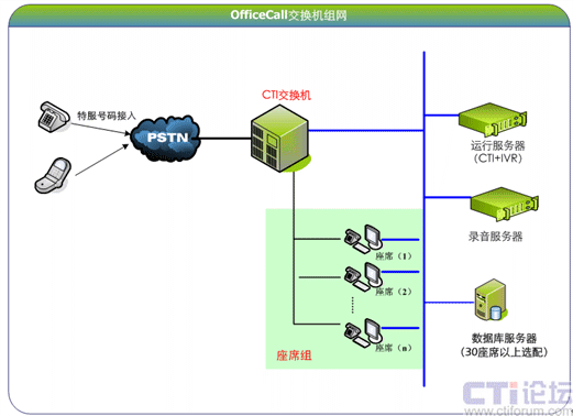OfficeCall目前主要支持AVAYA IPO,阿爾卡特OXO等中小型的交換機(jī),與這些中小型交換機(jī)組網(wǎng),共同建設(shè)100座席以下呼叫中心系統(tǒng)整體解決方案,通過簡化安裝配置和系統(tǒng)維護(hù),縮短系統(tǒng)上線時(shí)間,降低后期系統(tǒng)維護(hù)難度,減少系統(tǒng)的投資預(yù)算,為中型規(guī)模的呼叫中心系統(tǒng)提供更適合的解決方案。