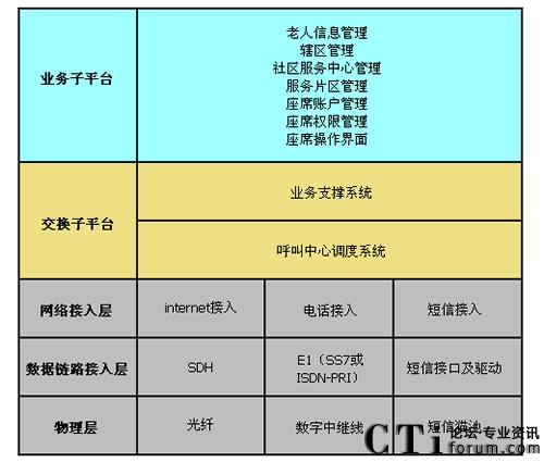 根據(jù)社區(qū)內(nèi)老人的情況,為加入社區(qū)呼叫系統(tǒng)(以下簡稱入網(wǎng))的老人發(fā)放老人專用手機(jī),并將采集到的老人檔案信息上傳于系統(tǒng)內(nèi)。當(dāng)老人通過手機(jī)固定一個(gè)撥號鍵撥打“服務(wù)中心服務(wù)統(tǒng)一電話號碼”時(shí),社區(qū)呼叫平臺根據(jù)老人所在位置將來電直接轉(zhuǎn)給對應(yīng)社區(qū)服務(wù)中心,社區(qū)服務(wù)中心的座席電腦上就會彈出老人信息(包括:名字、地址、聯(lián)系電話、兒女親屬電話、所在街道的社區(qū)、有無病史、歷史需求記錄等等)。