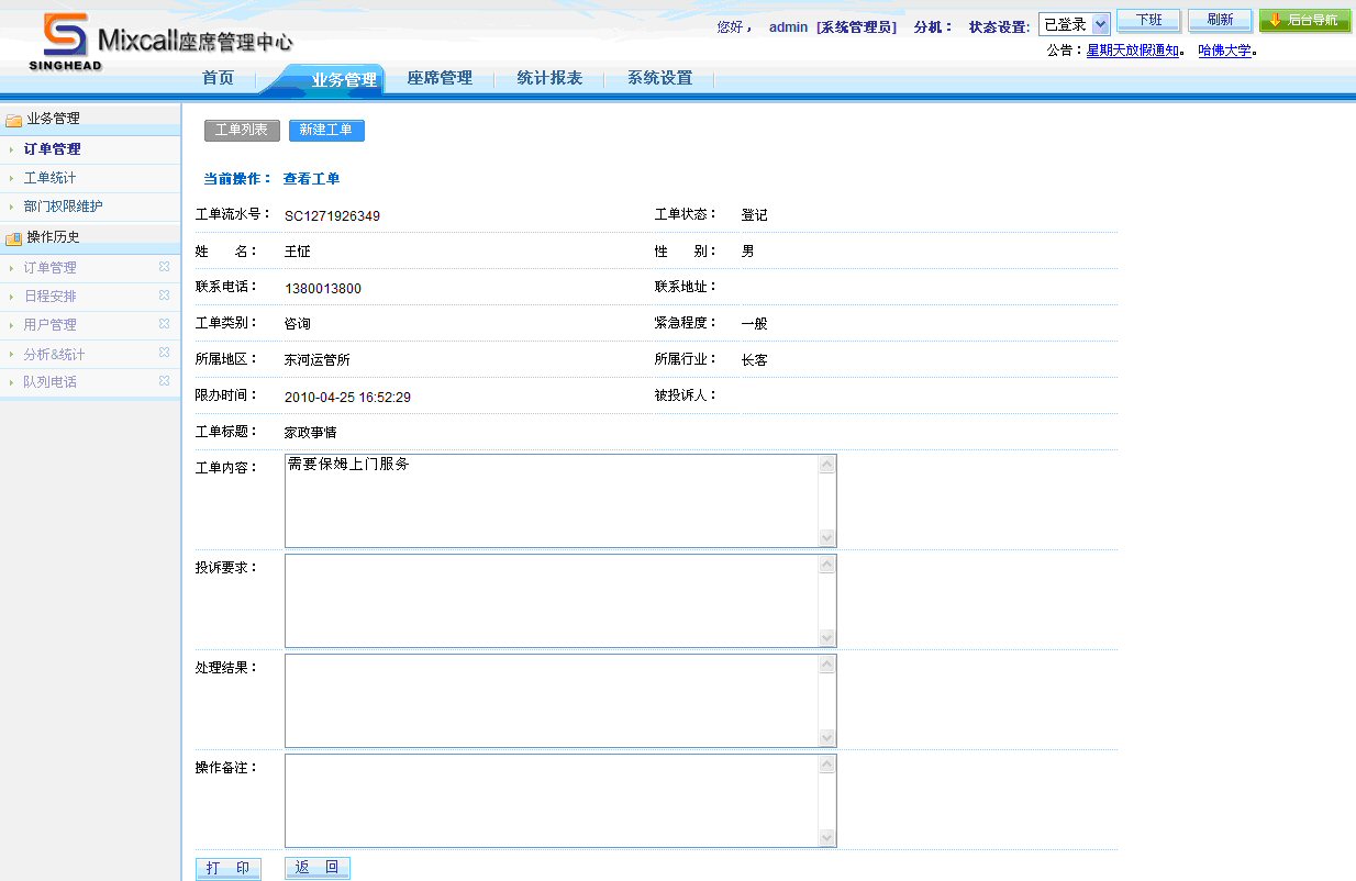 個(gè)人會(huì)員通過(guò)電話、短信、互聯(lián)網(wǎng)把需求反饋給中心,中心座席人員通過(guò)工單形式把需求反饋給對(duì)應(yīng)家政公司。