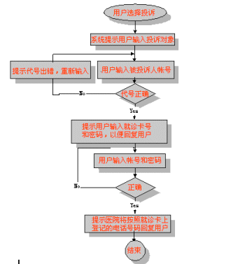 在處理用戶投訴時(shí),要求對醫(yī)院所有服務(wù)人員分配代碼。用戶投訴時(shí)按照服務(wù)代碼進(jìn)行投訴。同時(shí),醫(yī)院將對所有投訴用戶進(jìn)行回復(fù)。如通告處理結(jié)果,向用戶道歉等。對用戶回復(fù)時(shí),將按照用戶在申請就診卡時(shí)留下的電話號碼進(jìn)行回復(fù)。這種也可以促使用戶留下真實(shí)的電話號碼。用戶可以到醫(yī)院電話號碼。