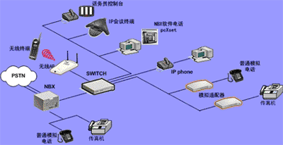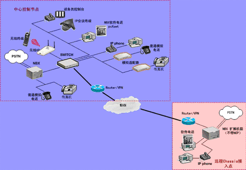 遠(yuǎn)端也可以有單獨的 IP 話機(jī)(不需要 NBX 呼叫處理器)接入系統(tǒng)。