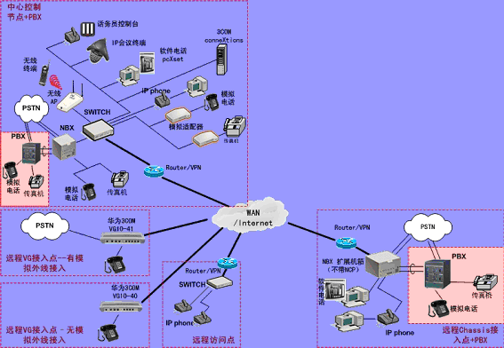 ②.統(tǒng)一的分支機構電話平臺,可以支持任何數據骨干網(WAN)技術,包括DDN、幀中繼、VPN、xDSL等。3COM NBX 系統(tǒng)也可以在無線局域網上運行。