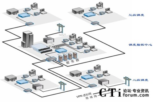 根據(jù)實(shí)際情況,總部可以部署調(diào)度控制中心,遠(yuǎn)端部署二級(jí)調(diào)度和三級(jí)調(diào)度終端,PSTN網(wǎng)關(guān)可以根據(jù)實(shí)際需要部署在任一點(diǎn)位。