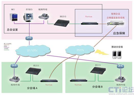 VORTEX 2241:3臺 放置于北京主會場。該設備可實現(xiàn)視頻會議的語音同備份語音無縫結(jié)合,確保兩路聲音切換時,與會者不會察覺;顯著減少發(fā)至其它站點的聲音中的環(huán)境噪聲,從而消除麥克風和線路輸入和電話接聽音頻的環(huán)境噪聲,提高現(xiàn)有會議裝置的整體音質(zhì)。