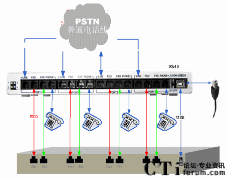 - 失效轉(zhuǎn)移機通過USB直接與IP通信設(shè)備通訊,USB接口兼容USB2.0和USB1.1標(biāo)準(zhǔn)。電話接口線路根據(jù)面板指示連接。