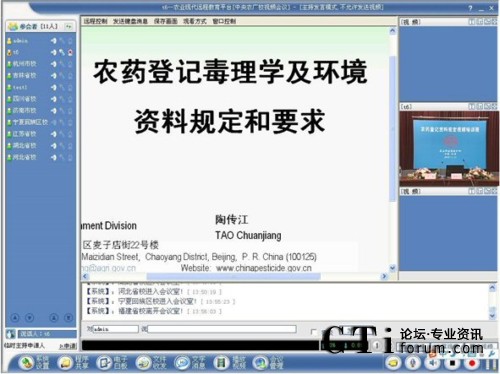 2009年11月10日,國家農(nóng)業(yè)部---農(nóng)藥登記資料規(guī)定視頻培訓(xùn)班順利召開,此次會(huì)議就是使用了連線通訊為中央農(nóng)廣校搭建的Q.Meeting衛(wèi)星網(wǎng)絡(luò)農(nóng)業(yè)現(xiàn)代遠(yuǎn)程教育平臺(tái),利用已有的衛(wèi)星網(wǎng)和互聯(lián)網(wǎng),進(jìn)行了全國范圍的培訓(xùn)。此次培訓(xùn)邀請了國家農(nóng)業(yè)部藥檢所各部門負(fù)責(zé)人參加,全國所有省市農(nóng)廣校、相關(guān)企業(yè)負(fù)責(zé)人都參加了培訓(xùn),參加人數(shù)達(dá)到2500多人。在會(huì)議過程中由各部門負(fù)責(zé)人給參會(huì)者講解新頒布的規(guī)定,后又對參會(huì)者提出的問題做了詳細(xì)的解答,會(huì)議達(dá)到了很好的效果。在會(huì)后總結(jié)時(shí),顧所長說道:“此次培訓(xùn)是我們第一次使用衛(wèi)星網(wǎng)絡(luò)進(jìn)行的大規(guī)模培訓(xùn),參加地區(qū)和參加人數(shù)都比以往要多,無論從質(zhì)量、效果、管理各方面都取得了很好的成果。同時(shí),此次培訓(xùn)的召開也預(yù)示著我們農(nóng)業(yè)系統(tǒng)的信息化進(jìn)程又向前邁進(jìn)了一步!