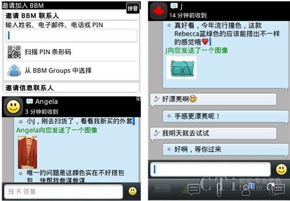 凱特周手袋為能迎合中國消費(fèi)者的品位需求,在引進(jìn)獨(dú)立設(shè)計(jì)師品牌的手袋時,都要充分吸取分布于國內(nèi)各地的導(dǎo)購人員的建議,這就形成了Kate極其信賴的智囊團(tuán)。然而,智囊團(tuán)的應(yīng)用卻極大的受到地域限制:當(dāng)Kate在美國決定是否引進(jìn)某款手袋時,在北京的小J、在上海的小Q以及在深圳的小M很難及時的加入到討論中。直到她們?nèi)渴褂昧撕谳悄苁謾C(jī)和服務(wù),其中包括的一款即時通訊工具BlackBerry Messenger(BBM)為智囊團(tuán)發(fā)揮作用提供了便利的通訊條件。BBM支持不同國家運(yùn)營商的黑莓用戶自由的互相添加為好友、聊天、分享圖片,其群組功能還支持分享語音文件、日歷和列表等。