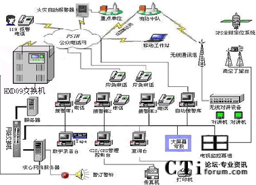 隨著國民經(jīng)濟的不斷發(fā)展,我國城市的現(xiàn)代化進(jìn)程在不斷加快,因而對消防部隊的反應(yīng)速度、調(diào)度指揮、現(xiàn)場搶險救災(zāi)等綜合能力要求越來越高.現(xiàn)代化的消防通信指揮系統(tǒng)是受理火災(zāi)報警、實施通訊調(diào)度指揮、執(zhí)行滅火救災(zāi)工作的必不可少的技術(shù)裝備,它對于保護(hù)國家和人民生命財產(chǎn)的安全、保障經(jīng)濟建設(shè)的順利發(fā)展、維護(hù)社會的穩(wěn)定有著十分重要的意義.,恒訊達(dá)公司的(HXD09)交換機切合實際,綜合應(yīng)用現(xiàn)代通信技術(shù)、計算機網(wǎng)絡(luò)技術(shù)、結(jié)合地理信息技術(shù)、VOIP、虛擬現(xiàn)實技術(shù),開發(fā)了網(wǎng)絡(luò)化、智能化、可視化的、高度模塊化、以技術(shù)先進(jìn)、組網(wǎng)靈活、整體性強、實時性高、安全可靠、實用高效為特點的可編程智能語音交換機,HXD09交換機接口易開放性,結(jié)合圖形化的流程生成器和二次開發(fā)接口,為119系統(tǒng)平臺開發(fā)商提供強大的平臺保證。