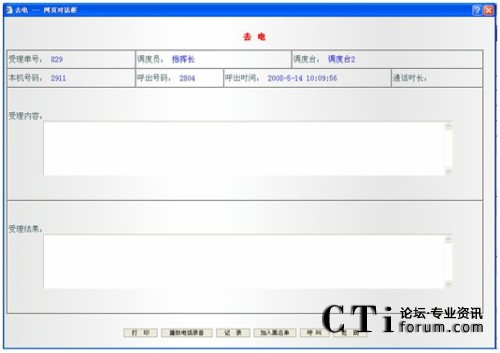 單擊某一記錄條,可彈開相應的記錄單,記錄單分為三種:普通電話記錄單,未接電話記錄單和呼出電話記錄單。