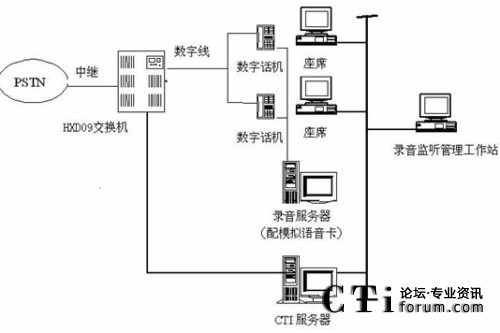 本系統(tǒng)物理結(jié)構(gòu)HXD09交換機、CTI服務器、IVR(交互式語音應答)/IFR(交互式傳真應答)服務器、統(tǒng)計維護管理工作站、數(shù)據(jù)庫/應用服務器、錄音工作站、網(wǎng)絡(luò)系統(tǒng)等構(gòu)成。