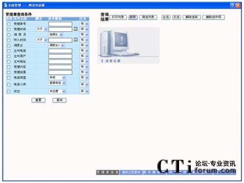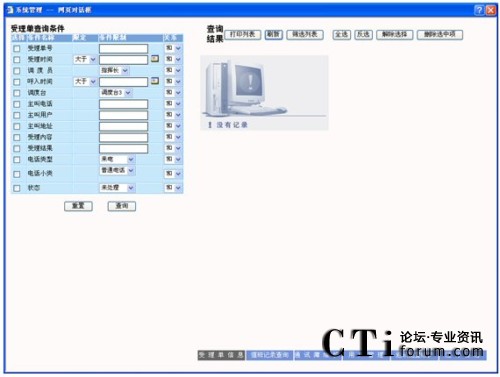 查詢:在要查詢的字段上打勾,輸入要查詢字段的信息及各條件間關(guān)系,點擊“查詢”按鈕,則在屏幕右側(cè)顯示相應的查詢結(jié)果,可以對這些查詢結(jié)果進行維護,查詢條件可自由定制。