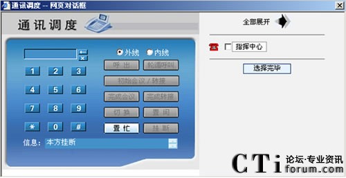 通話過程中擁有權(quán)限的班長坐席可以對來電進行強拆、強插或轉(zhuǎn)移給任何一部分機、外部電話、手機,而無須讓對方再撥打一次電話 |