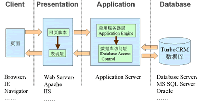為了滿足移動(dòng)辦公和分布式管理的需求,CRM系統(tǒng)將更多采用基于Browser-Server架構(gòu)的多層結(jié)構(gòu)。B/S結(jié)構(gòu)的特點(diǎn)是在客戶端使用標(biāo)準(zhǔn)的Web頁面瀏覽器(如Internet Explorer等),不需安裝特殊的應(yīng)用程序,減少了升級和維護(hù)的難度;所有的業(yè)務(wù)數(shù)據(jù)都保存在Server端,確保了數(shù)據(jù)的安全;在通訊方面,由于使用標(biāo)準(zhǔn)的HTTP協(xié)議,使得系統(tǒng)可以輕松的實(shí)現(xiàn)移動(dòng)辦公和分布式管理。另外為了系統(tǒng)功能的可擴(kuò)展性,應(yīng)該采用將數(shù)據(jù)庫、應(yīng)用層及表現(xiàn)層分離的多層結(jié)構(gòu)。獨(dú)立的數(shù)據(jù)庫層便于支持多種數(shù)據(jù)庫系統(tǒng),將實(shí)現(xiàn)企業(yè)邏輯的應(yīng)用層獨(dú)立使業(yè)務(wù)邏輯的更新和擴(kuò)展更為方便,而當(dāng)需要支持手機(jī)、PDA等新的客戶端設(shè)備時(shí)只要對表現(xiàn)層進(jìn)行擴(kuò)充就可以實(shí)現(xiàn)。同時(shí),這種多層結(jié)構(gòu)也可以采用負(fù)載均衡與集群等技術(shù)實(shí)現(xiàn)系統(tǒng)的高可用性和性能的平滑擴(kuò)展。