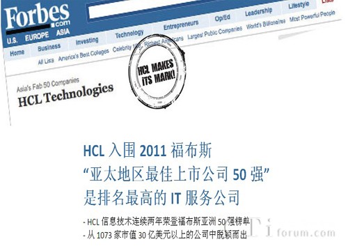 福布斯2011年亞太最佳上市公司50強(qiáng) HCL再度上榜
