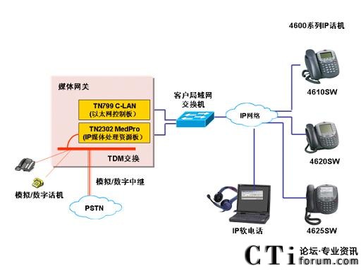 安裝于媒體網(wǎng)關(guān)上的TN799 C-LAN以太網(wǎng)控制板和TN2302 MedPro媒體處理資源板均提供標(biāo)準(zhǔn)的10/100Base-Tx以太網(wǎng)端口連接到客戶(hù)局域網(wǎng),并根據(jù)客戶(hù)網(wǎng)絡(luò)配置相應(yīng)的IP地址。