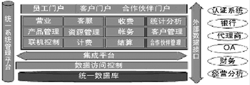 整個(gè)系統(tǒng)采用了基于J2EE架構(gòu)的n層分布式體系結(jié)構(gòu),同時(shí)引入了中間件等技術(shù),實(shí)現(xiàn)了用戶界面和業(yè)務(wù)處理邏輯之間的分離。軟件設(shè)計(jì)采用了構(gòu)件化、參數(shù)控制和軟件總線等技術(shù),便于系統(tǒng)擴(kuò)展,支持新業(yè)務(wù)的推出。