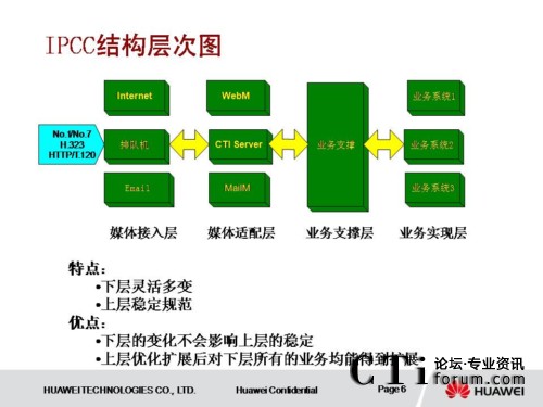 IPCC系統(tǒng)采用了獨立于各種接入媒體的設計結(jié)構(gòu),具有良好的開放性和可擴展性。系統(tǒng)采用業(yè)務和交換分離的設計思想,業(yè)務層及業(yè)務支撐層從傳統(tǒng)的網(wǎng)絡中分離出來,使業(yè)務實現(xiàn)層也具有良好的開放性和可擴展性。
