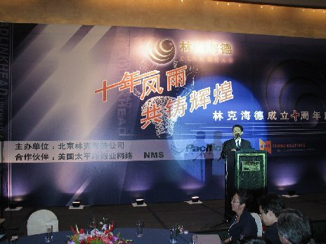 2004年6月10日,林克海德公司在昆侖飯店迎來了十年華誕,林克海德的新朋老友歡聚一堂,齊唱同一首歌。美國NMS總裁Bob,太平洋網(wǎng)絡總裁Tony都遠程趕來祝賀。在過去的十年中,林克海德見證了中國電信增值業(yè)務領(lǐng)域從無到有、從簡單的語音信箱到目前斑斕多彩的彩信業(yè)務的發(fā)展歷程,被譽為國內(nèi)板卡市場的旗艦。現(xiàn)在隨著中國通信領(lǐng)域電信增值業(yè)務的發(fā)展,林克海德憑借語音增值業(yè)務方面的豐富經(jīng)驗,成為業(yè)內(nèi)知名的語音、傳真、數(shù)據(jù)等多媒體業(yè)務開發(fā)平臺的提供商和系統(tǒng)方案服務商,林克海德公司走進了新的語音時代!