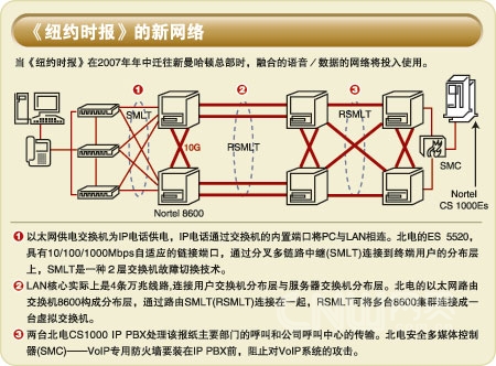 日前,《紐約時報》正在準備更換新的辦公地址,計劃明年春天搬進時代廣場內的一個新的配有先進設施的辦公樓中。除了玻璃+鋼鐵結構、沒有一點咖啡污漬的辦公桌和沒有面包屑的鍵盤外,大約3500名《紐約時報》雇員將被遷移到由北電獨家架設的集IP數(shù)據(jù)、語音和視頻統(tǒng)一的基礎設施網絡上。