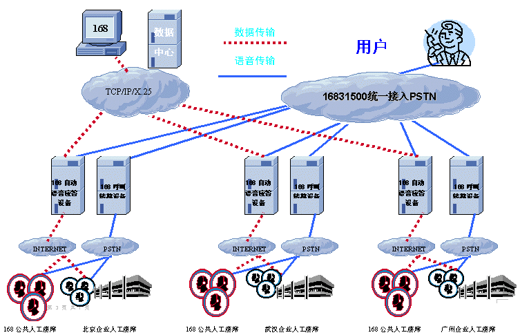 由于我國168/160聲訊服務(wù)業(yè)務(wù)開展較早,自從八十年代初在廣東建立第一家聲訊臺以來,目前國內(nèi)四百多個城市都擁有168/160聲訊臺,從業(yè)人員達到數(shù)萬人,可以同時為數(shù)十萬計的消費者提供信息服務(wù),每年創(chuàng)造數(shù)十億元的經(jīng)濟效益,形成了一項發(fā)源于傳統(tǒng)電信行業(yè),而又區(qū)別傳統(tǒng)業(yè)務(wù)的增值服務(wù)業(yè)務(wù)。面對現(xiàn)代通信技術(shù)日新月異的發(fā)展,在中國電信集團的協(xié)調(diào)下,各地分公司大力改造傳統(tǒng)168/160聲訊臺的設(shè)備條件,摒棄原來各地聲訊臺各自為政的局面,利用先進的網(wǎng)絡(luò)技術(shù)將分布在全國的聲訊臺聯(lián)在一起,形成整合優(yōu)勢,開辟以呼叫中心接入服務(wù)、IP電話、集團電話、IDC業(yè)務(wù)、電話電子商務(wù)為核心的新興業(yè)務(wù)。