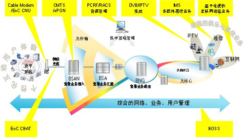 新興的融合業(yè)務(wù)特別是基于視頻的多媒體業(yè)務(wù)將是廣電在三網(wǎng)融合的大潮中抓住機遇,吸引更多用戶,提高網(wǎng)絡(luò)盈利能力的重要基石。從原來單向廣播接入網(wǎng)向雙向、大帶寬的接入網(wǎng)演進。作為寬帶接入市場的領(lǐng)導(dǎo)者,我們提供基于廣電同軸電纜網(wǎng)絡(luò)特性的完整接入解決方案,實現(xiàn)從光纖到小區(qū)、光纖到樓、光纖到戶等各種接入方式,滿足各種場景的需求。