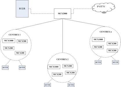 MCX2000支持連接多個屬于不同企業(yè)的MCX200/1000,能夠把同一個企業(yè)的不同MCX200/1000集中組成IP CENTREX群,支持群內(nèi)呼叫、群外呼入、群外呼出等功能,使用戶感覺不到多個MCX200的存在,如同所有的用戶在同一個交換設備內(nèi)。MCX2000同時支持多個IP