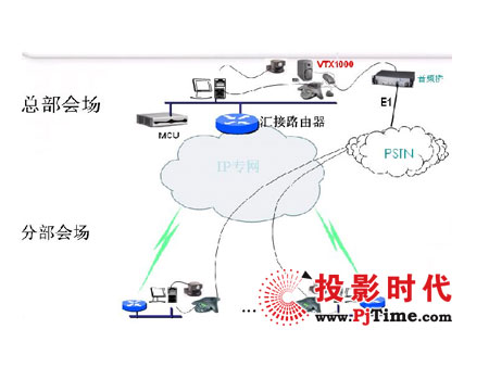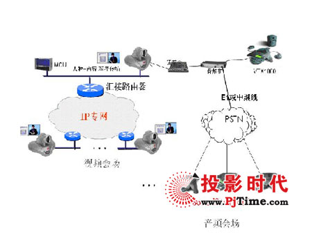 以上拓?fù)鋱D為某單位建立的一套視頻會(huì)議系統(tǒng),會(huì)場(chǎng)地理?xiàng)l件比較惡劣,計(jì)劃組建一套交互式電話(huà)會(huì)議系統(tǒng)進(jìn)行擴(kuò)展,并且音頻及視頻會(huì)議可以充份融合的方案。主會(huì)場(chǎng)配備一套POLYCOM