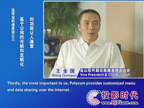 寶利通公司中國(guó)區(qū)總經(jīng)理李鋼先生說(shuō):“此次寶利通全球領(lǐng)先的高清視頻會(huì)議系統(tǒng)得到金山軟件的認(rèn)可,為我們的極致高清方案帶來(lái)又一個(gè)經(jīng)典案例。作為金山軟件企業(yè)信息化進(jìn)程的重要一環(huán),高清方案成為先期實(shí)施的項(xiàng)目之一。這充分反映了本土高科技企業(yè)對(duì)構(gòu)建方便、快捷、高質(zhì)量統(tǒng)一協(xié)作平臺(tái)所給予的足夠重視,我們深表欽佩。真誠(chéng)期待通過(guò)我們的優(yōu)質(zhì)服務(wù)和成熟的解決方案,讓更多客戶體會(huì)到協(xié)作通信所帶來(lái)的成本效益優(yōu)勢(shì)和工作便利!