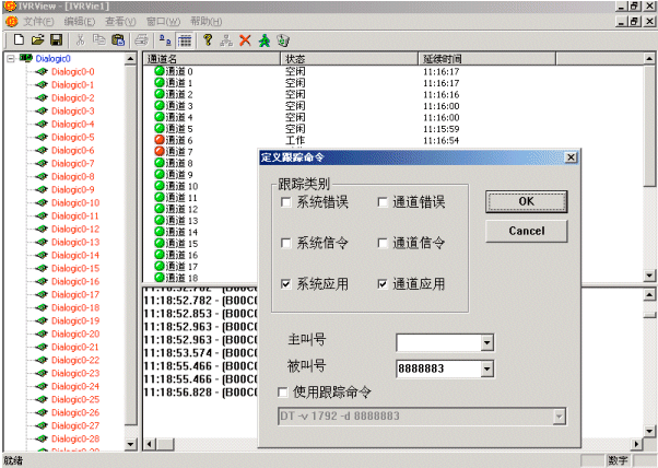 ICANS平臺提供監(jiān)控模塊,用于控制ICANS平臺的啟動和監(jiān)視平臺的工作狀況,以及連入其他應(yīng)用模塊。該平臺可以以圖表方式全屏顯示所有線路狀態(tài)(空閑/撥號/語音/傳真)及訪問總次數(shù),詳細(xì)反映每條線路、每個(gè)任務(wù)的實(shí)時(shí)運(yùn)行情況,便于用戶及時(shí)掌握系統(tǒng)的運(yùn)行情況。