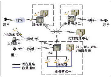 每個(gè)業(yè)務(wù)節(jié)點(diǎn)都由ISM(智能交換模塊)、CTI服務(wù)器、DB(數(shù)據(jù)庫)、VRM(語音資源模塊)和座席等模塊構(gòu)成,下面逐一介紹各模塊的作用和功能。