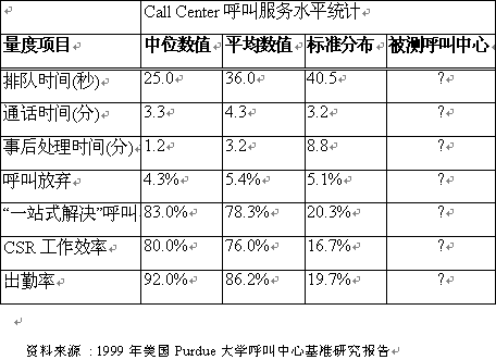 基準(zhǔn)測試是Call Center管理重要的一環(huán),它可使Call Center在最短的時間內(nèi)把不同范疇的問題,缺點找出來,更可借鑒其它Call Center的成本和效益管理的指針,結(jié)合改善服務(wù)表現(xiàn)和生產(chǎn)力,使之能在最低的成本下,提供最專業(yè),最高效益的客戶服務(wù),為發(fā)展Call Center基業(yè)打下堅實的基礎(chǔ)。
