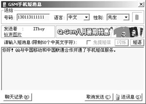 目前IM與各種移動(dòng)終端設(shè)備的結(jié)合也越來(lái)越多。使用QQ向手機(jī)發(fā)送短信需要手機(jī)開通移動(dòng)QQ服務(wù),單擊對(duì)方頭像圖標(biāo),在打開的快捷菜單中選擇“手機(jī)短訊”命令,在打開的對(duì)話框中輸入信息,然后點(diǎn)擊發(fā)送即可完成,這時(shí)對(duì)方的手機(jī)就可以收到一個(gè)消息。給BP機(jī)發(fā)短訊也是一樣,不過對(duì)方的BP機(jī)服務(wù)臺(tái)必須是QQ所支持的情況下才行。當(dāng)對(duì)方的手機(jī)收到你發(fā)來(lái)的短信后還可以回復(fù),這時(shí)候您的QQ會(huì)彈出“查看手機(jī)短訊”的窗口來(lái),非常方便。