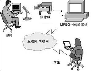 對于需要上課的學(xué)生,可以利用MPEG-4交互教學(xué)系統(tǒng),在自己的家里觀看教師講課,不但能看到教師,還可以同步看到教師計算機屏幕上的講義。如果在學(xué)生家里的計算機上安裝了麥克風(fēng)和攝像頭,還可以進行視頻交流,“面對面的”溝通。學(xué)生可以“舉手”回答老師的問題,學(xué)生之間可以討論,老師可以進行網(wǎng)上測驗。
