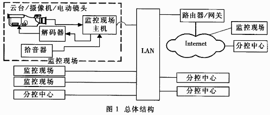 隨著計算機網(wǎng)絡技術、多媒體技術、計算機視覺與模式識別技術的發(fā)燕尾服,一種以數(shù)字化、智能化為特點的多媒體遠程數(shù)字監(jiān)控系統(tǒng)應運而生,即基于IP的數(shù)字監(jiān)控系統(tǒng),實現(xiàn)了由傳統(tǒng)的模擬監(jiān)控到數(shù)字監(jiān)控質的飛躍。與傳統(tǒng)的模擬監(jiān)控系統(tǒng)相比較,數(shù)字遠程監(jiān)控系統(tǒng)幾個最主要的優(yōu)勢是:可以借助網(wǎng)絡實現(xiàn)遠程監(jiān)控;在遠程不同地點的分控中心或同個分控中心可同時調看某一個或者幾個監(jiān)控現(xiàn)場的音視頻數(shù)據(jù),從而實現(xiàn)分布式的音頻頻接入和音視頻數(shù)據(jù)共享,同時,可以與監(jiān)控現(xiàn)場人員進行對講;可以對遠程監(jiān)控現(xiàn)場的云臺、攝像機等外圍設備進行控制。視頻、音頻的實時、分布式傳輸及控制指令的可靠傳輸是遠程數(shù)字監(jiān)控系統(tǒng)的一個關鍵問題。本文設計并實現(xiàn)了遠程數(shù)字音頻頻監(jiān)控系統(tǒng),采用IP
