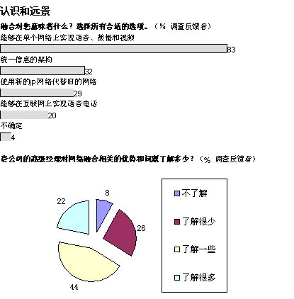 在這個方面,當前對減少話音成本的關注可能限制管理人員的視野。在我們的調查中,盡管許多人意識到對以上趨勢做出響應的重要性,但是只有很少一部分人(13%)承認融合網絡具有可以提高員工效率的潛力。